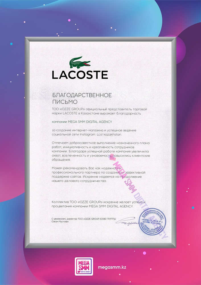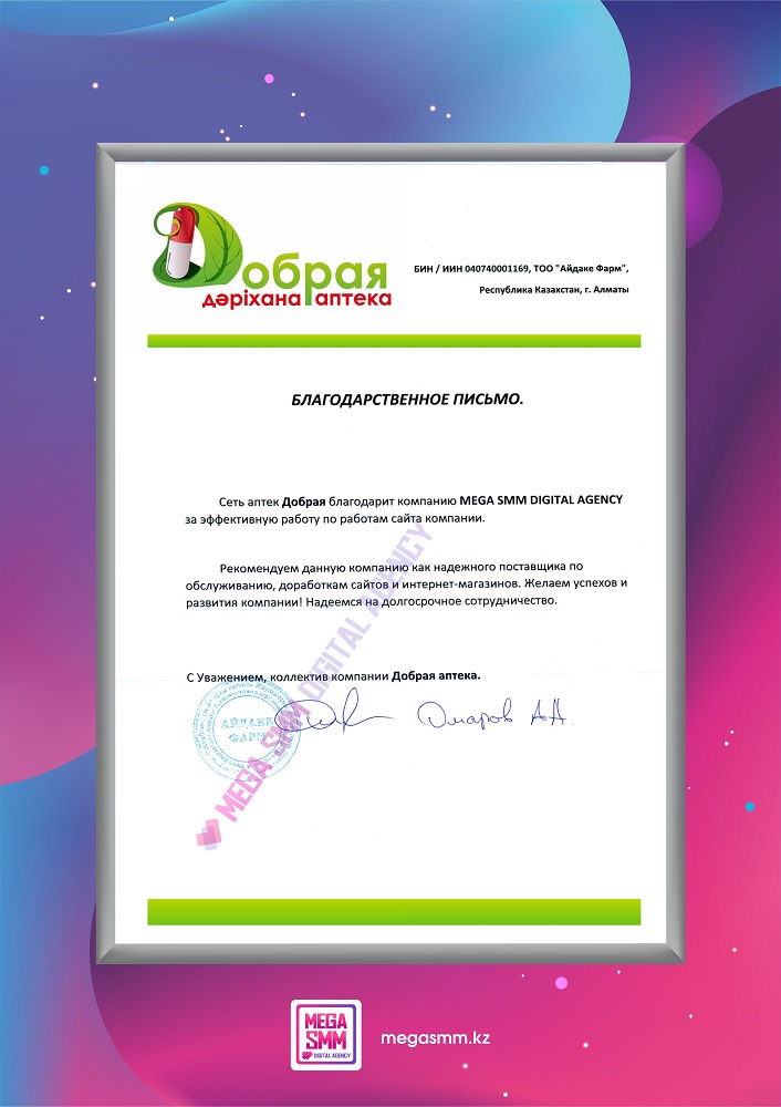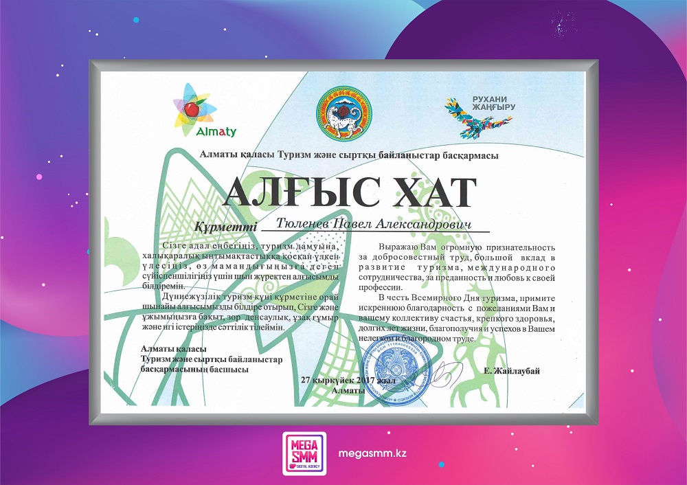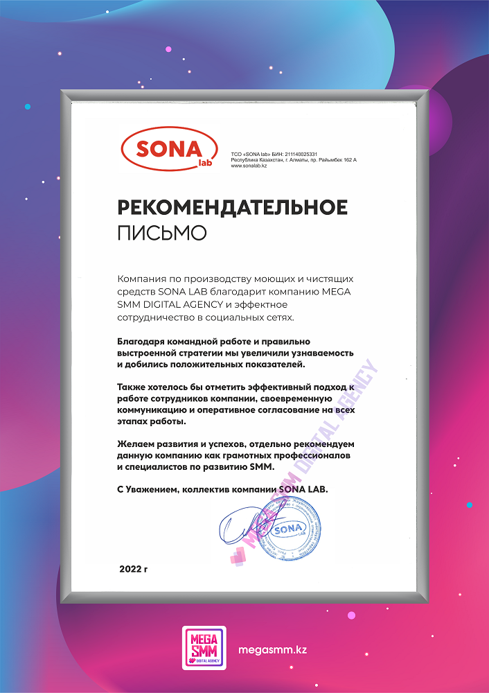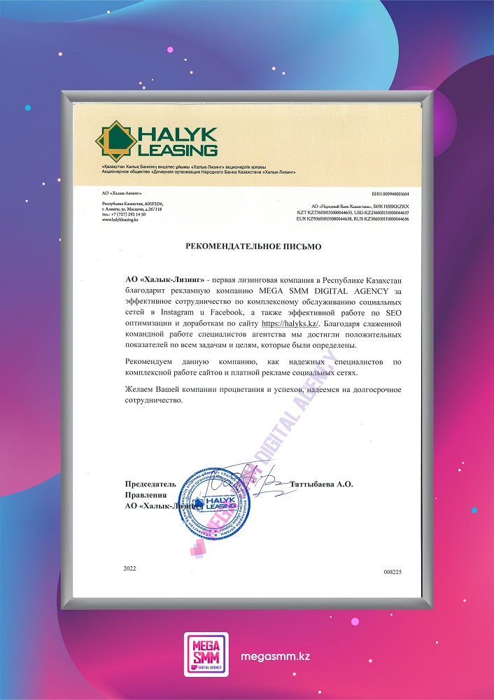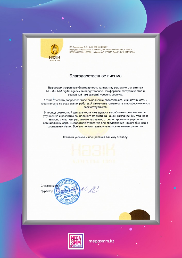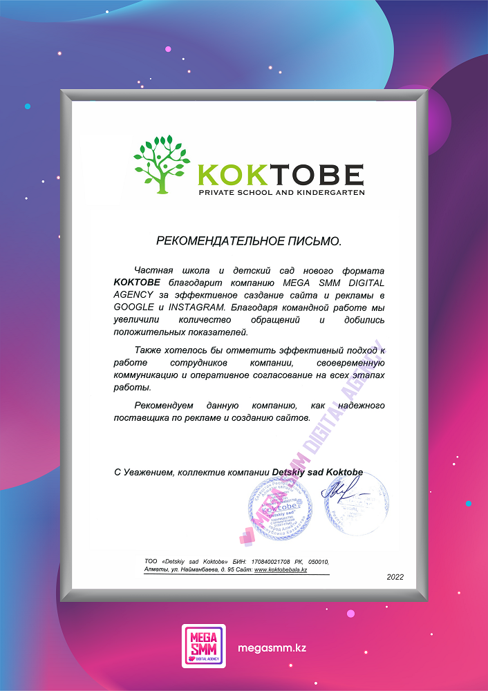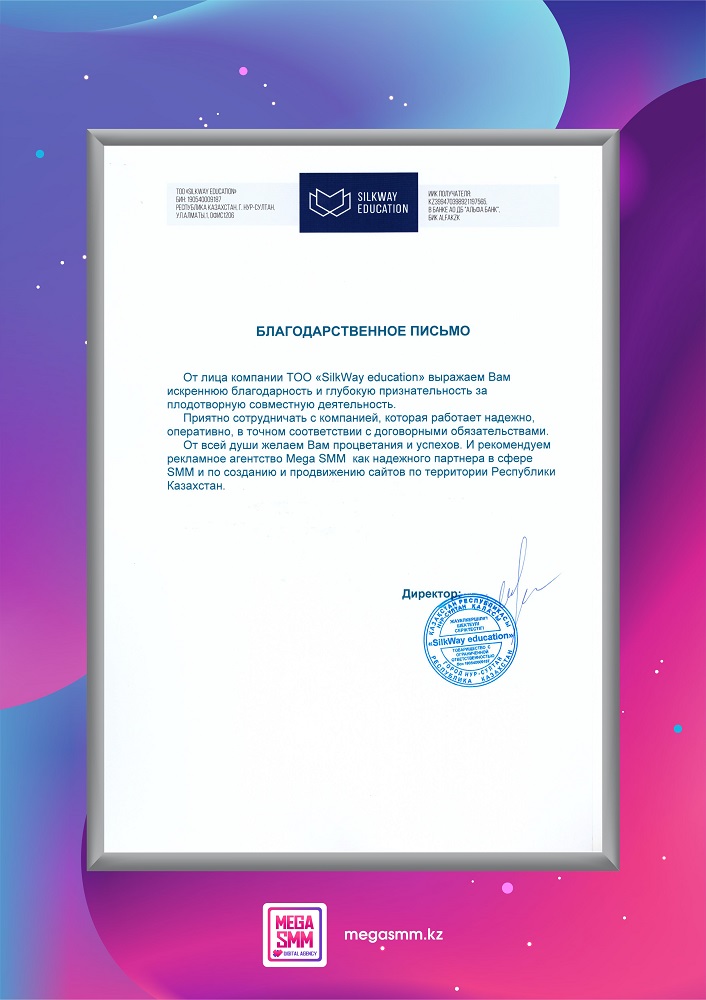 Выражаем благодарность руководству и персоналу ТОО «Погуляй CITY» и рекомендуем компанию MEGA SMM, как надежного партнера в качестве предоставления рекламы и SMM услуг на территории Республики Казахстан.