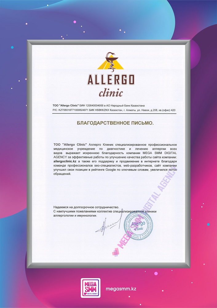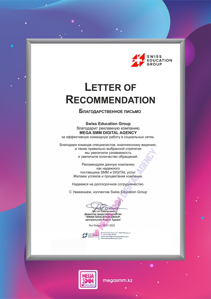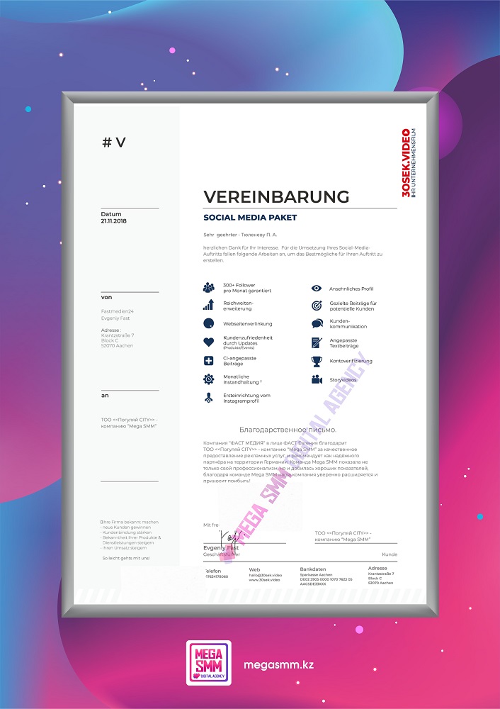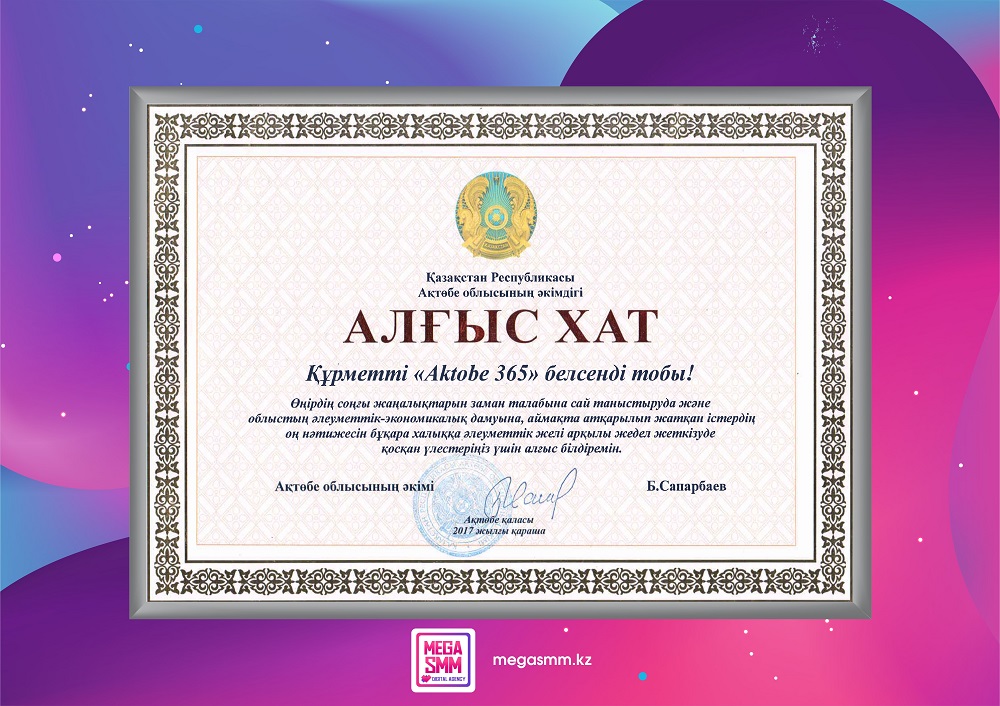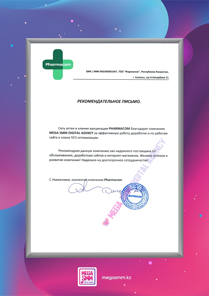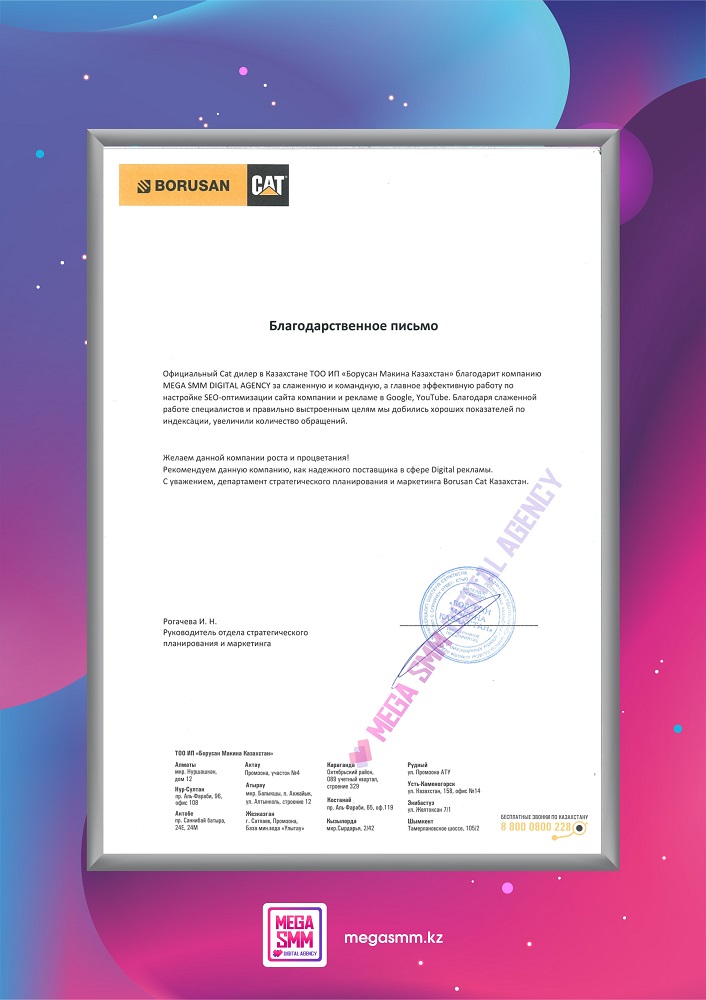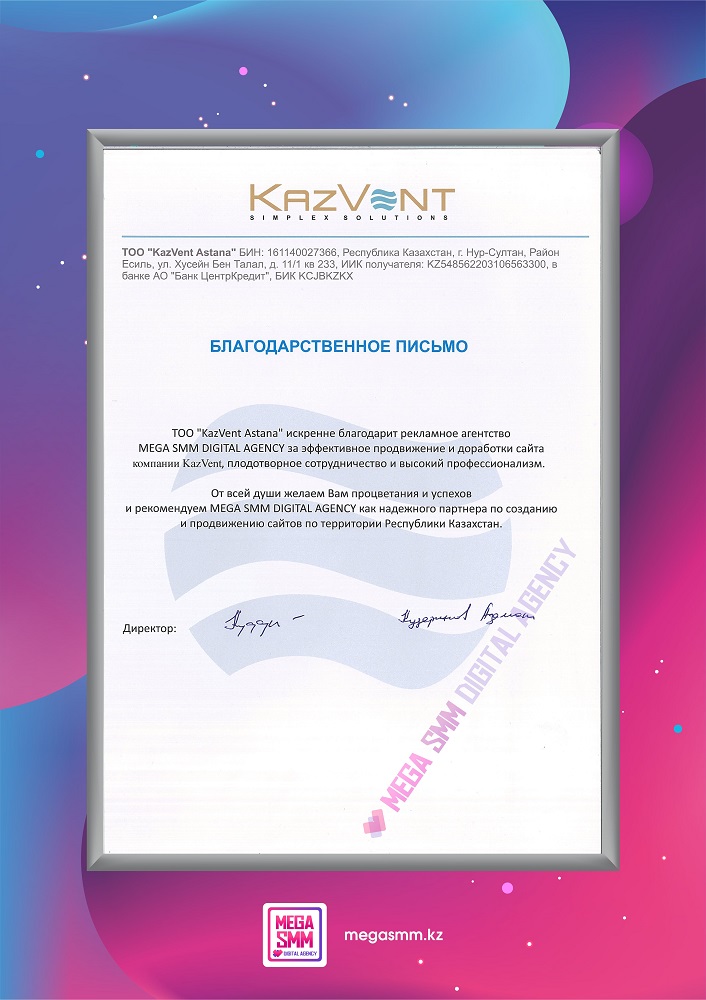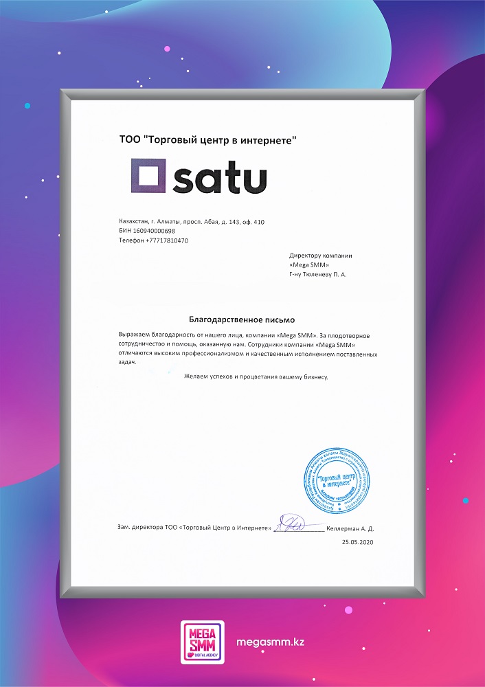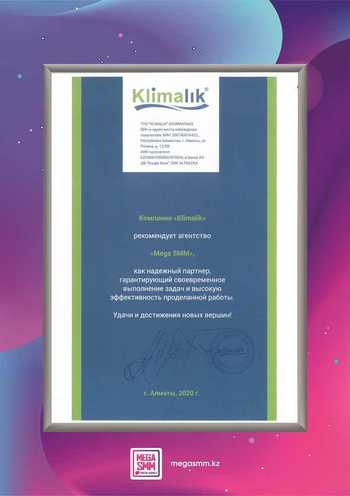 Выражаем благодарность руководству и персоналу ТОО «Погуляй CITY» и рекомендуем компанию MEGA SMM, как надежного партнера в качестве предоставления рекламы и SMM услуг на территории Республики Казахстан.
