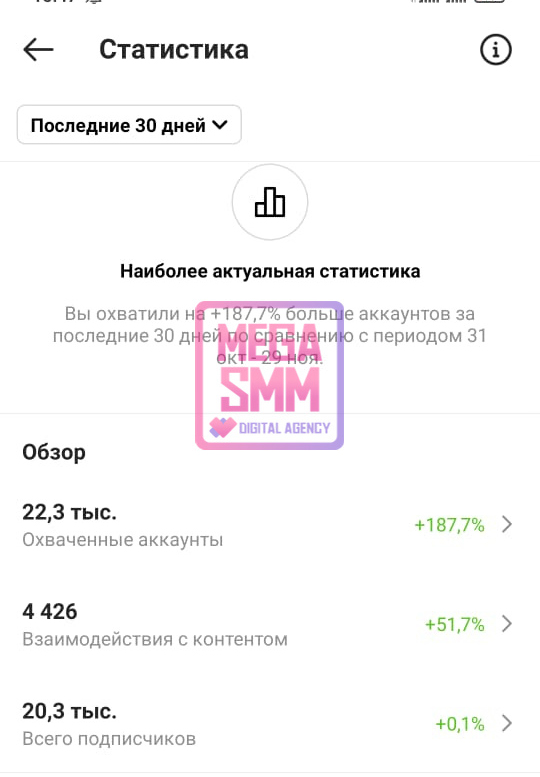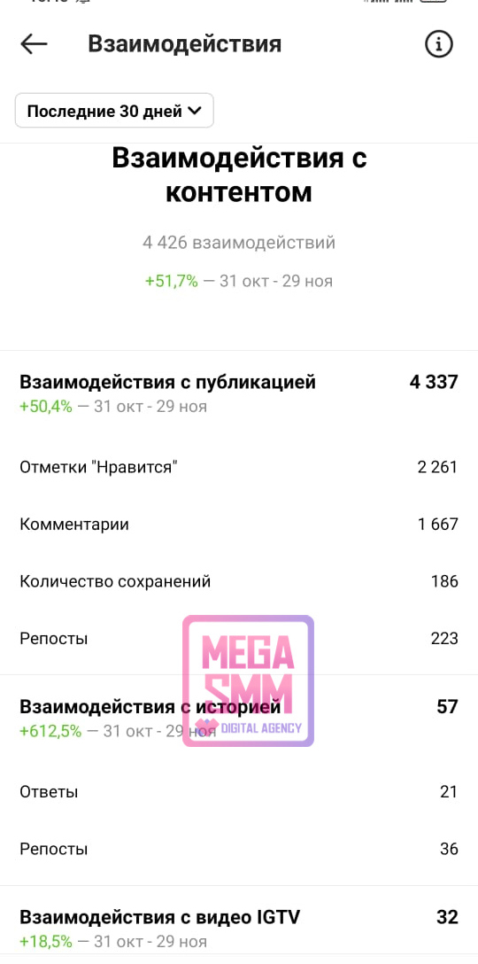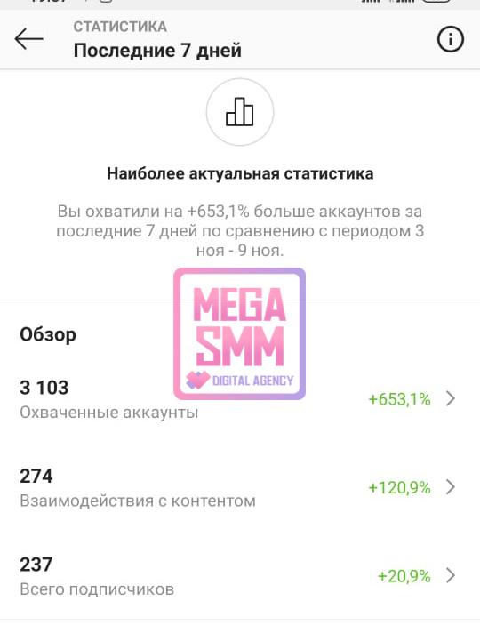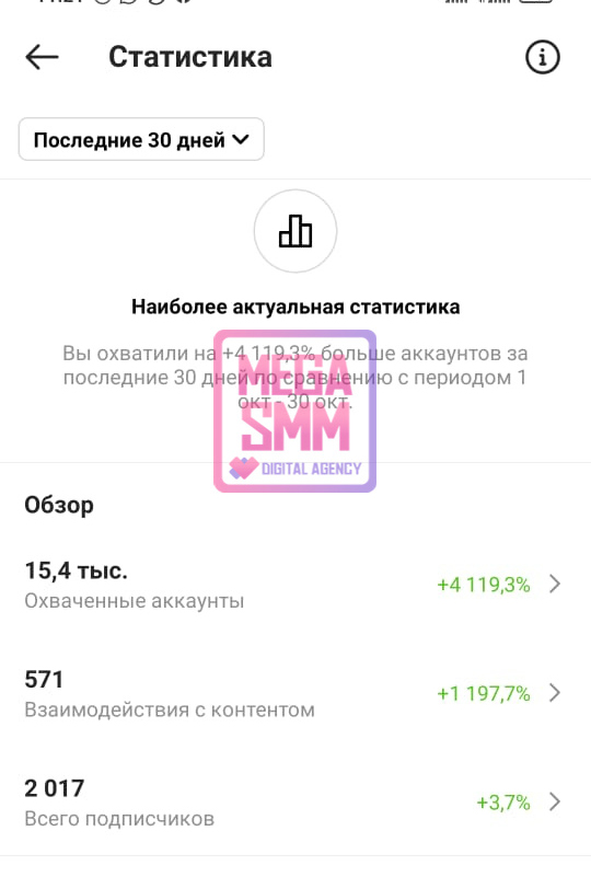 Благодарим рекламную компанию MEGA SMM DIGITAL AGENCY за сотрудничество и развитие Instagram аккаунта.