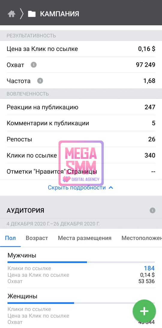 Рекомендуем MEGA SMM DIGITAL AGENCY, как надежных специалистов по комплексной работе сайтов и платной рекламе социальных сетей.